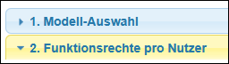 Die beiden Bereiche »Modell-Auswahl« und »Funktionsrechte pro Nutzer« sind aktuell geschlossen.