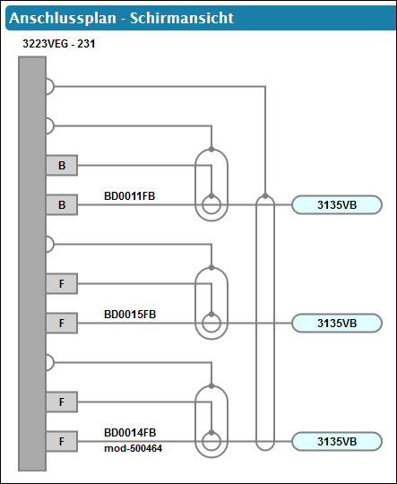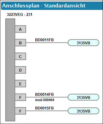 Nachdem Sie die Sicht Schirmansicht gewählt und das Funktionssymbol Anzeigen gedrückt haben, wird Ihnen im gleichen Fenster unterhalb von Anschlussplan – Schirmansicht die entsprechende Sicht für den Anschlussplan dargestellt.